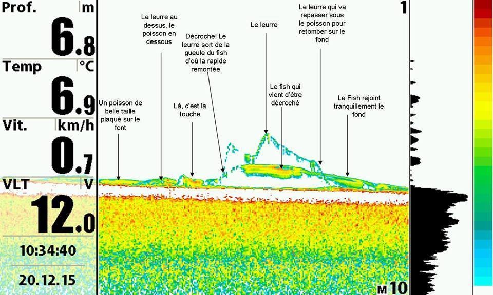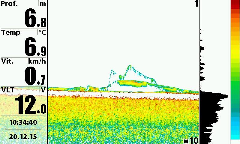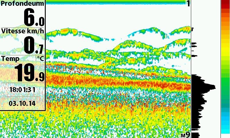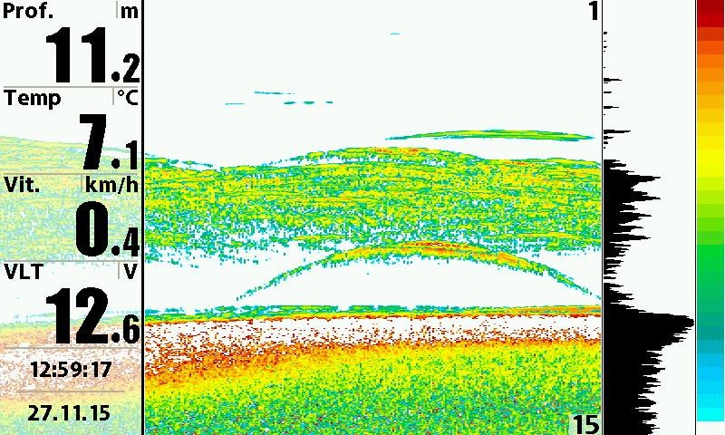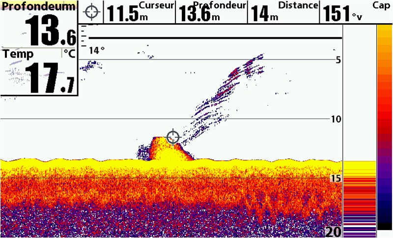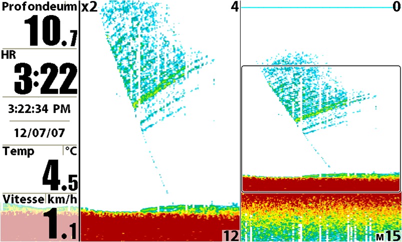 Le faisceau large de 83 kHz et de 60 ° indique les poissons ainsi que le fond.
