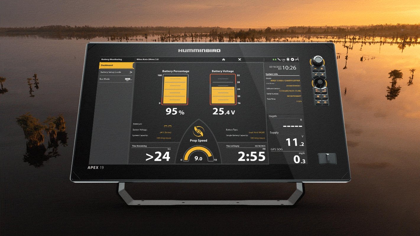 Vous pourrez consulter en temps réel votre puissance, l'autonomie restante, la vitesse de l'hélice. Une alerte de batterie faible s'affichera sur votre Humminbird® lorsque l'autonomie passera en dessous de 20%. Un mode économie d'énergie a aussi été intégré. Il prolonge la durée de vie de la batterie en utilisant l'énergie plus efficacement.