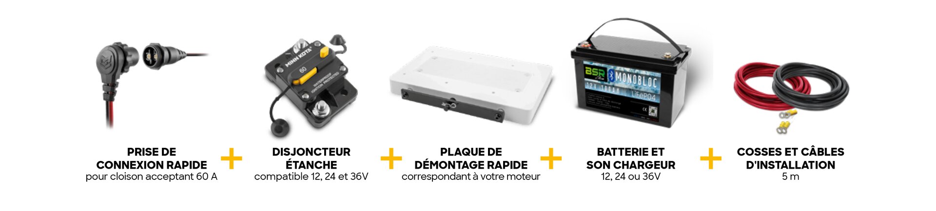 Pour alimenter votre moteur Minn Kota avec une batterie Lithium LiFeP04 BSR, nous vous proposons des ensembles à des prix attractifs composés des éléments indispensables pour réaliser une installation conforme qui vous assurera sécurité, performance optimale et durabilité.