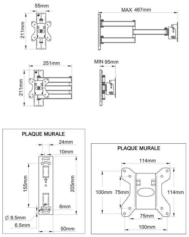 BT-7513 : Fixation murale articulée 2 bras - VESA