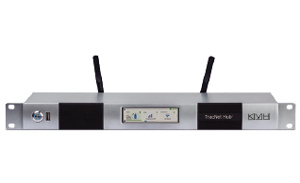 TracNet Hub+ Alimenté en CA, avec interface à écran tactile, emplacement pour carte SIM fournie par l’utilisateur, routeur Wi-Fi, ports Ethernet et deux lignes VoIP intégrés. Montage en rack.