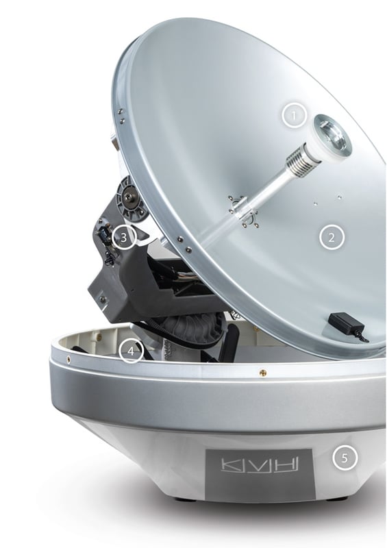 2 - L’antenne accordée, associée à la technologie exclusive RingFire™ de KVH, assure une réception exceptionnelle