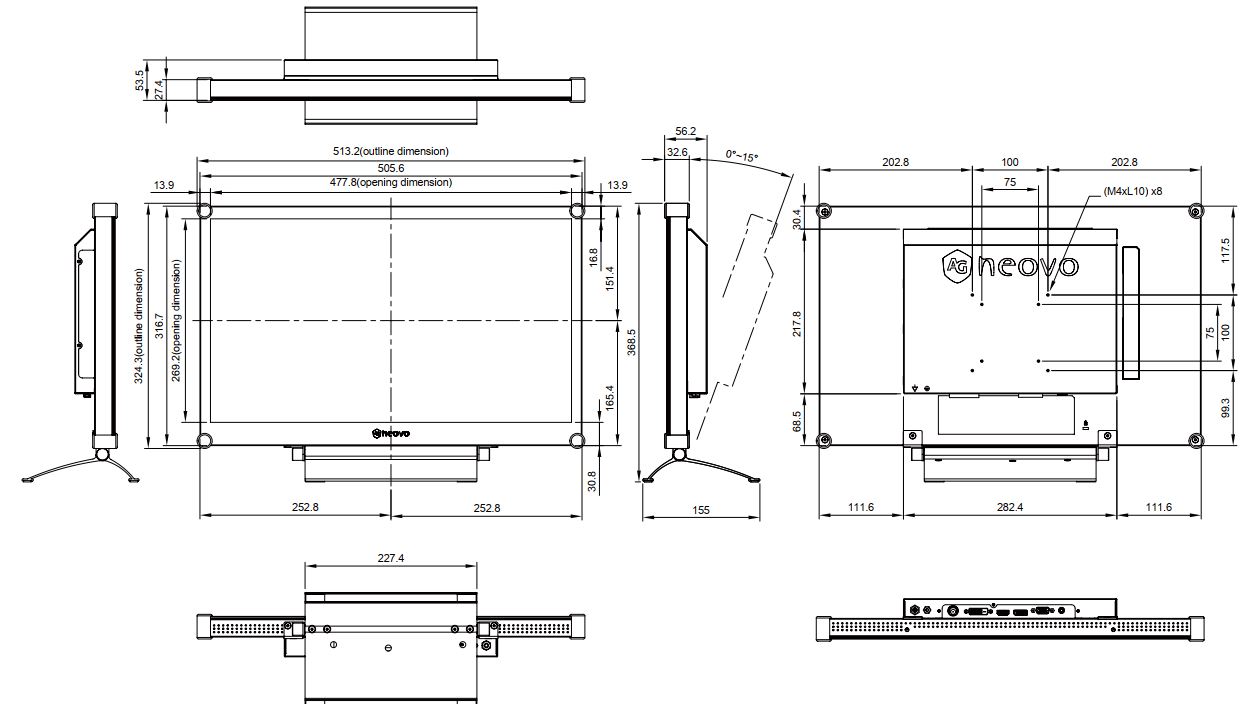 | Dimensions sans pied | 513,2 x 324,3 x 56,2 mm |